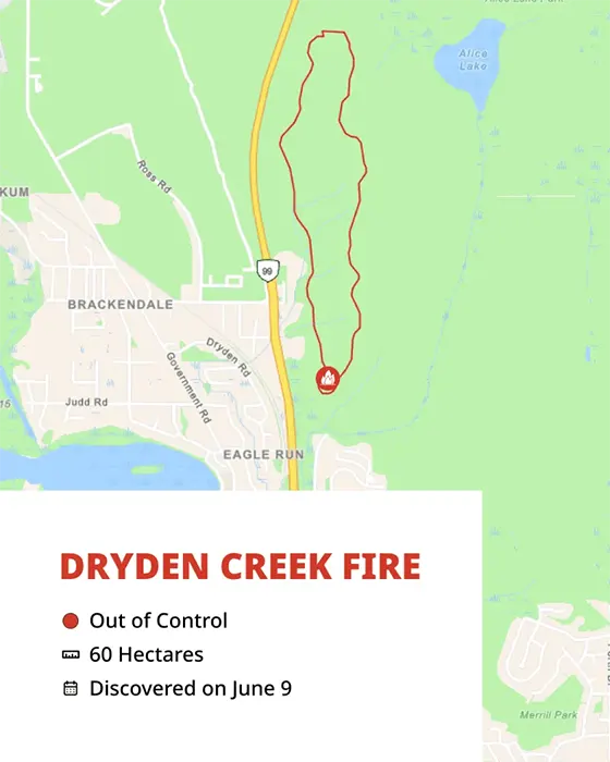 This map reveals the wildfire danger zones surrounding Squamish—marked in red to show just how close the risk really is.